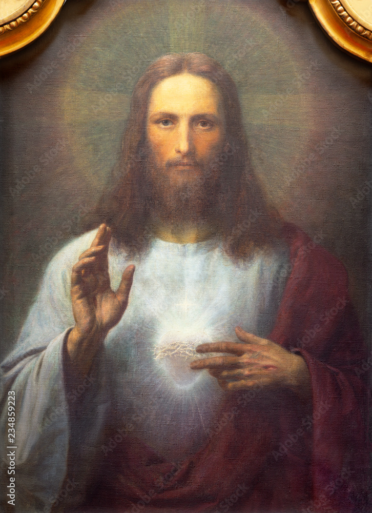 Fotografie PRAGUE, CZECH REPUBLIC - OCTOBER 12, 2018: The painting of Heart of Jesus in church kostel Svatého Tomáše by unknown artist of 19