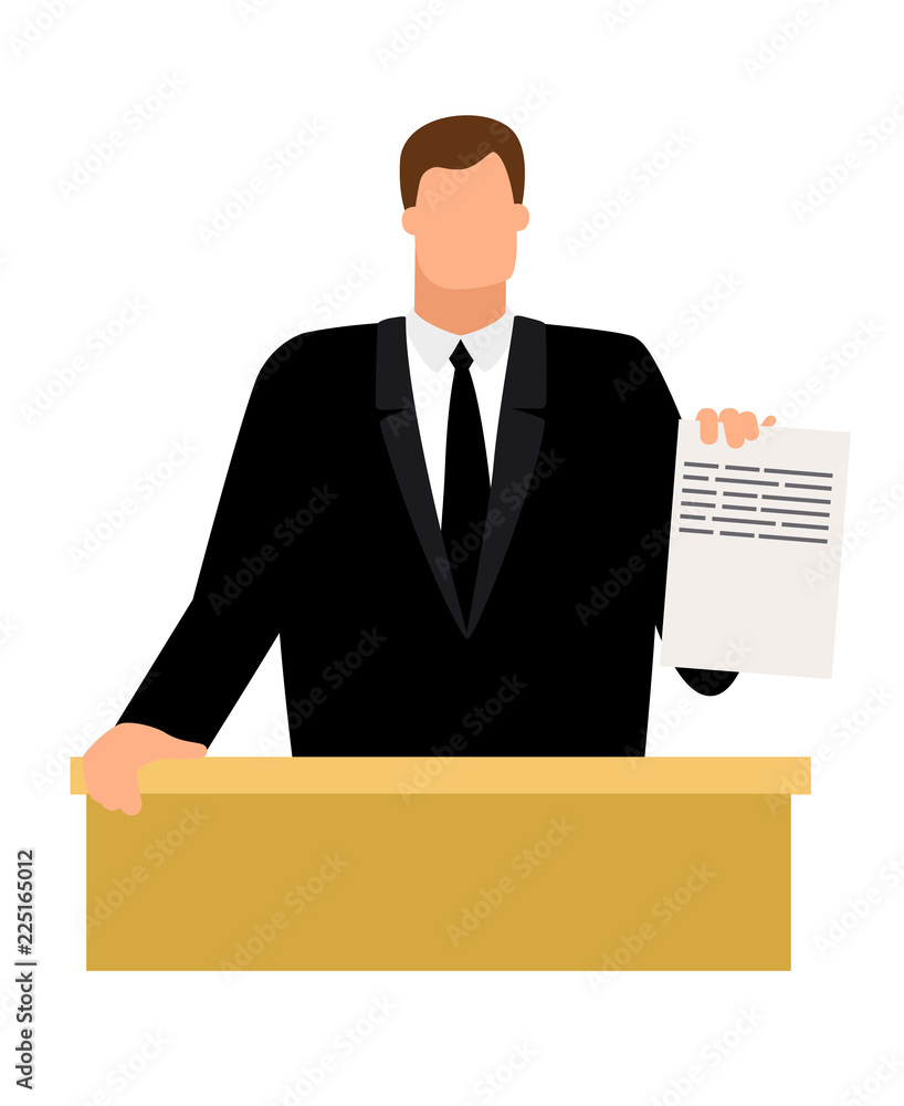 Obraz na plátně Prosecutor with document in hand icon on white background, vector illustration