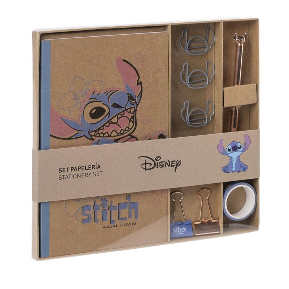 Papírnická sada inspirovaná Stitchem. Najdete v ní krásný kraftový sešit formátu A5, kovovou propisku s černým inkoustem, lepicí pásku, 5 ušatých klipů ve tvaru Stitchovy hlavy a 2 kovové klipy. Skvělá pro každodenní psaní a organizaci – a perfektní dárek pro fanoušky Disney.