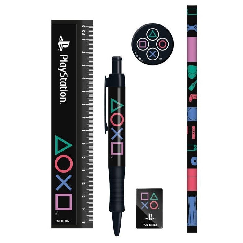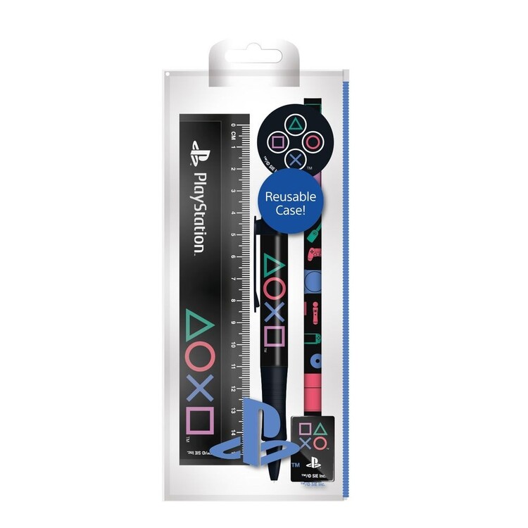 Oficiální školní set PlayStation kombinuje ikonické symboly ovladače se spolehlivou výbavou do lavice: najdete v něm gumu, ořezávátko, pravítko 15 cm, kuličkové pero a tužku. Praktické balení v průhledném, znovupoužitelném, uzavíratelném pouzdru udrží vše pohromadě a vždy po ruce.