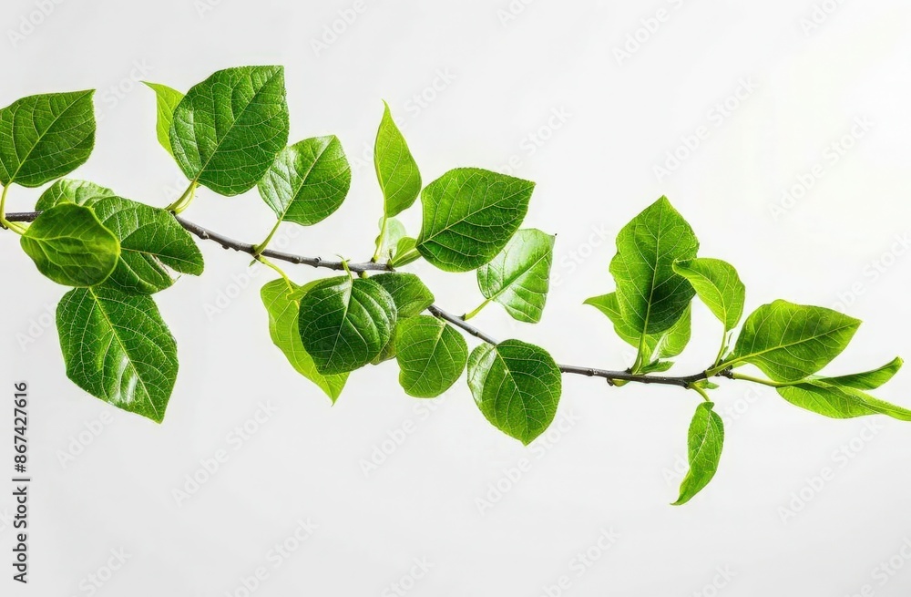 Fotografie Pure Nature: Lush Green Leaves of a Branch on a Clean White Background