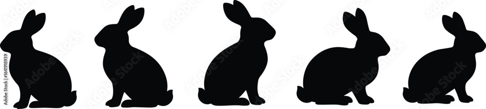 Fotografie Rabbit silhouette row, black bunny shapes, sitting hare outline, pet rabbit vect