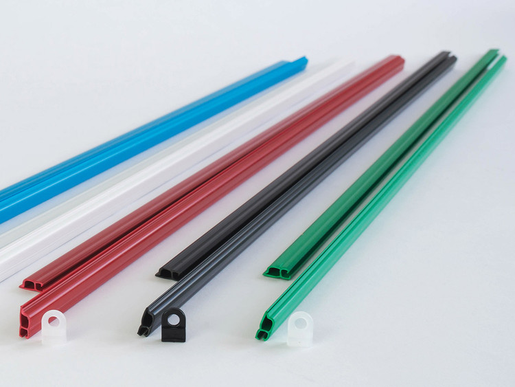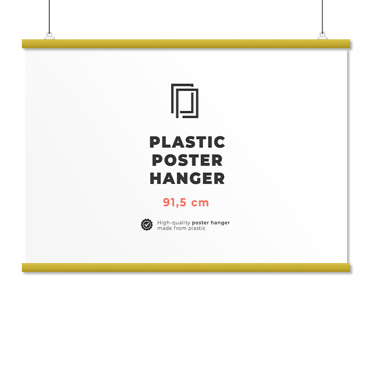 Balení plakátových lišt obsahuje 2 kusy plastových lišt + 2 jezdce na zavěšení, které buď pověsíte na hřebíčky, nebo mezi nimi natáhnete provázek.