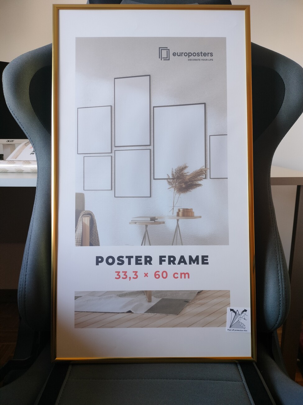 Kvalitní rám na plakát evropské výroby s plexisklem a MDF deskou. Na zadní straně obsahuje po obou stranách ocelové úchyty pro zavěšení. Neobsahuje paspartu.