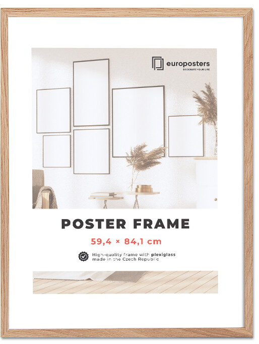 Kvalitní rám na plakát evropské výroby s plexisklem a MDF deskou. Na zadní straně obsahuje po obou stranách ocelové úchyty pro zavěšení. Neobsahuje paspartu.