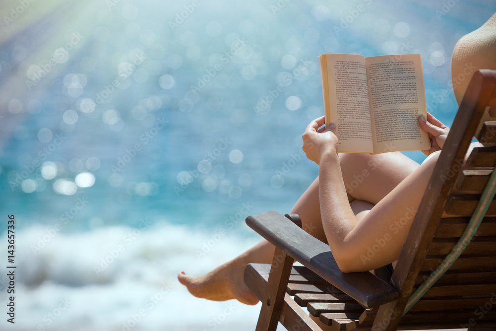 Fotografie Reading book in the beach hands holding book