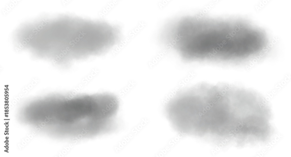 Fotografie Realistic dark grey smoke clouds texture set ideal for adding moody atmosphere o