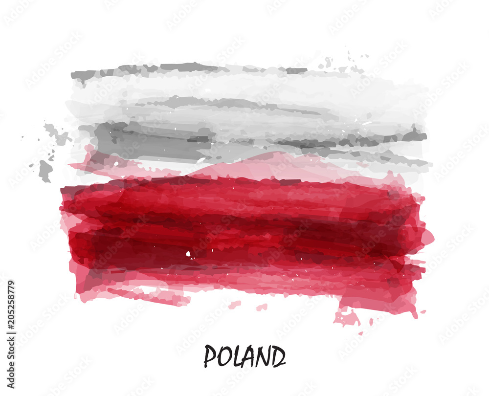 Obraz na plátně Realistic watercolor painting flag of Poland . Vector