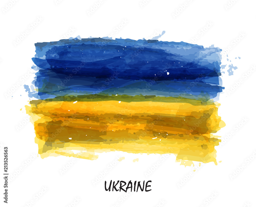 Obraz na plátně Realistic watercolor painting flag of Ukraine . Vector