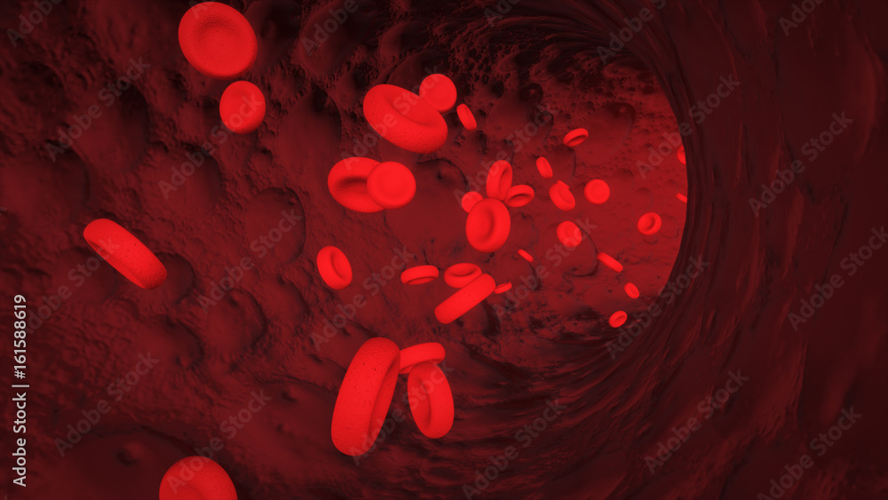 Fotografie Red blood cells in bloodstream macro view