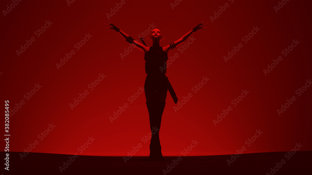 Fotografie Red Demon Elf Imp Minion Helper at the Gates of Hell in Bodysock an Boots Standi