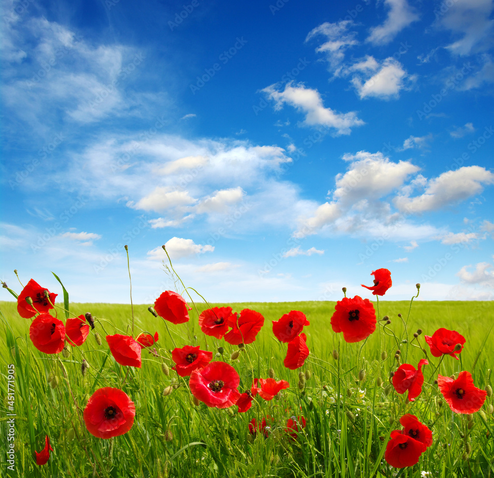 Fotografie Red poppies on field