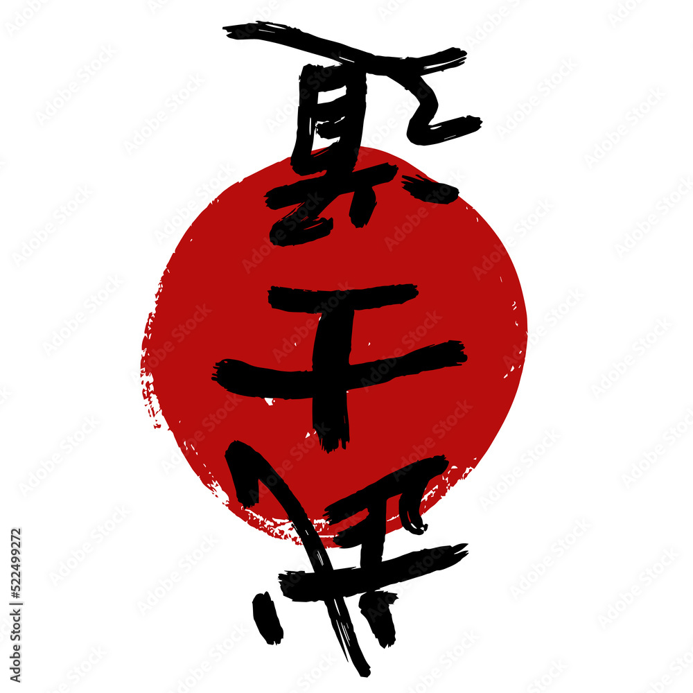 Fotografie Red sun, Chinese characters, oriental art, paint