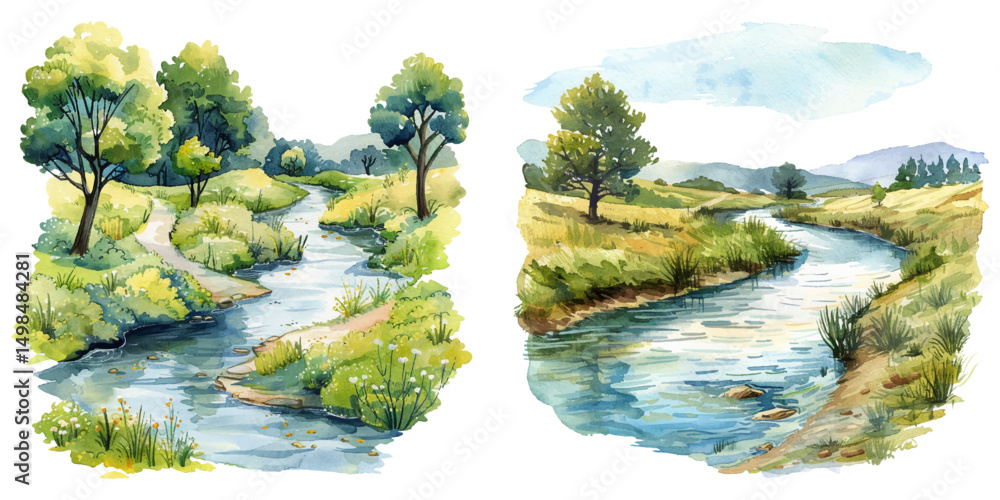 Obraz na plátně riverscape watercolor vector illustration