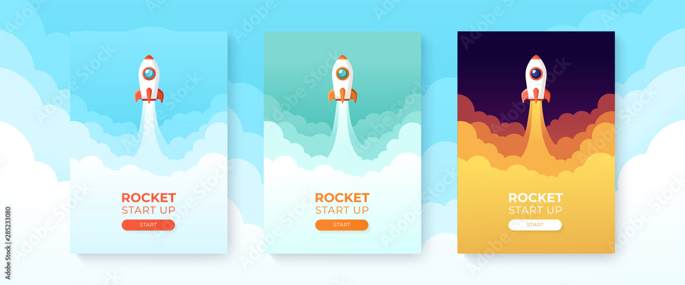 Fotografie Rocket launch in the sky flying over clouds