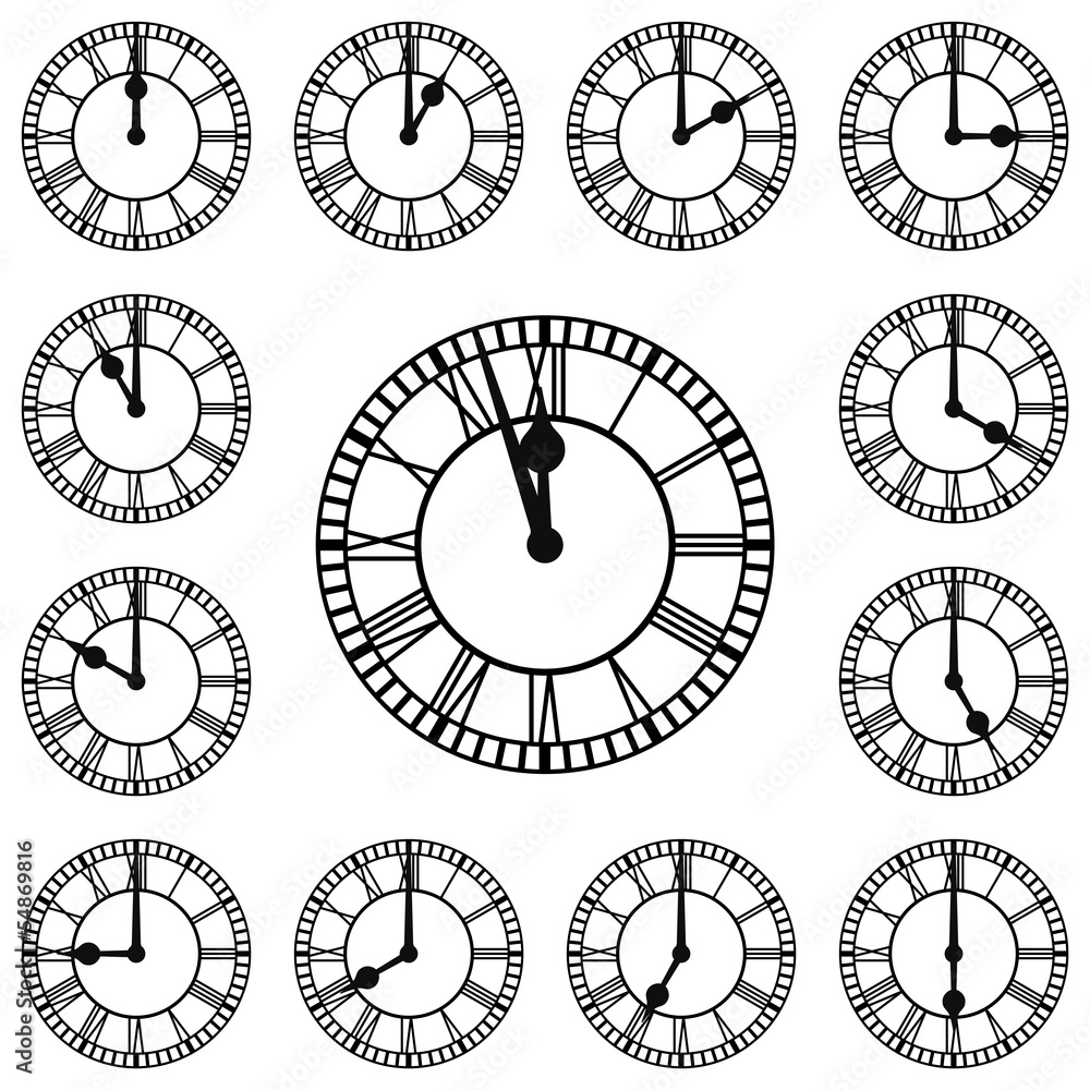 Fotografie Roman Numeral Clocks Showing Every Hour