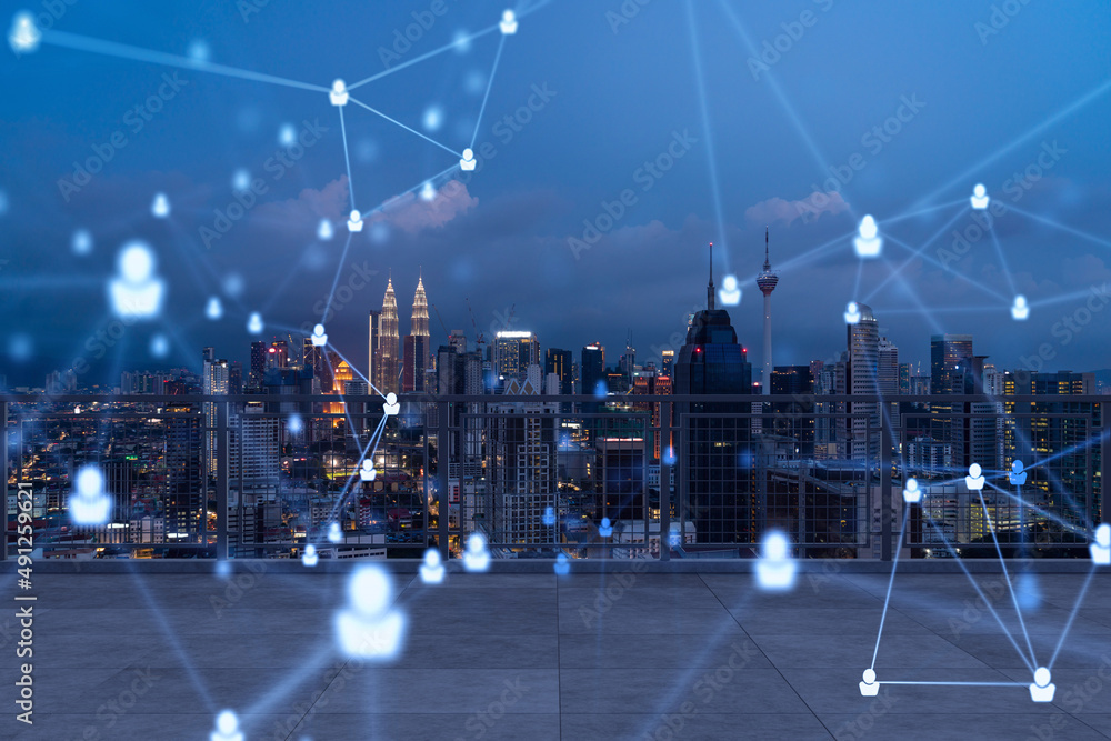 Fotografie Rooftop with concrete terrace, Kuala Lumpur night skyline