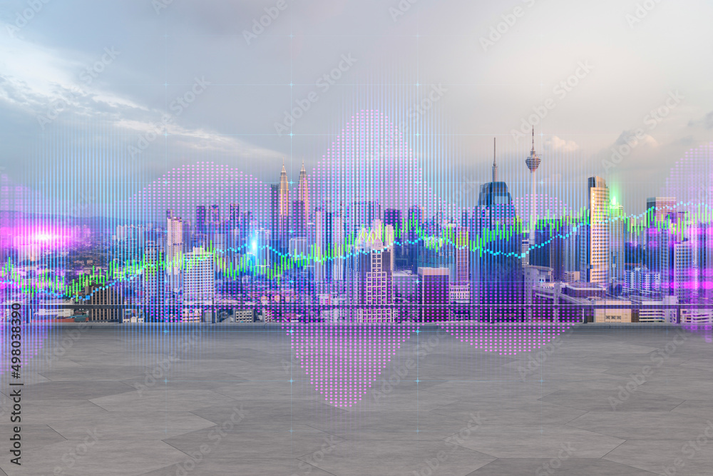 Fotografie Rooftop with concrete terrace, Kuala Lumpur sunset skyline