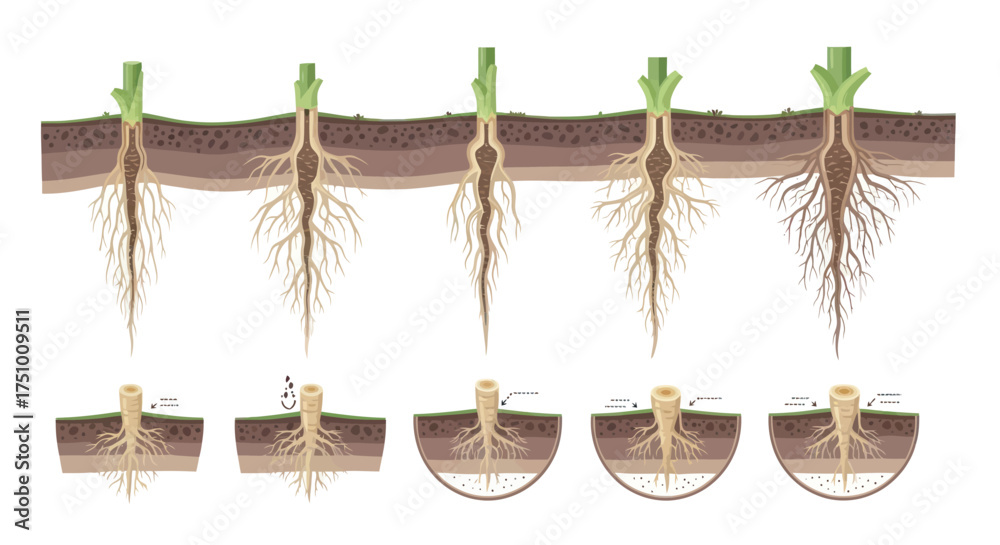 Fotografie Root System Development Stages: A Visual Guide to Plant Growth and Root Structure