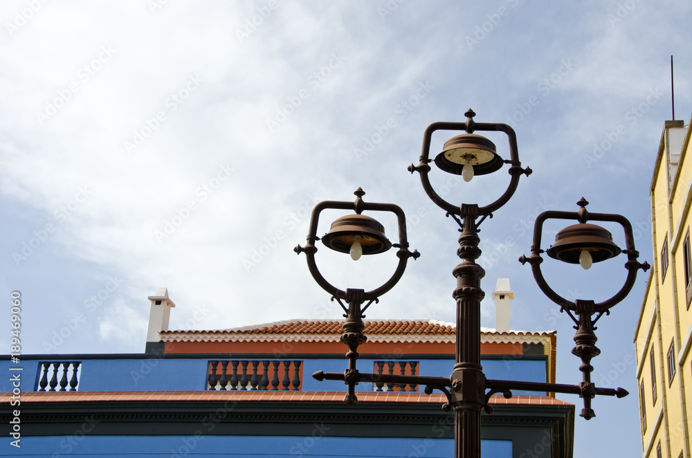 Fotografie Rusty vintage street lamps in old town, Spain