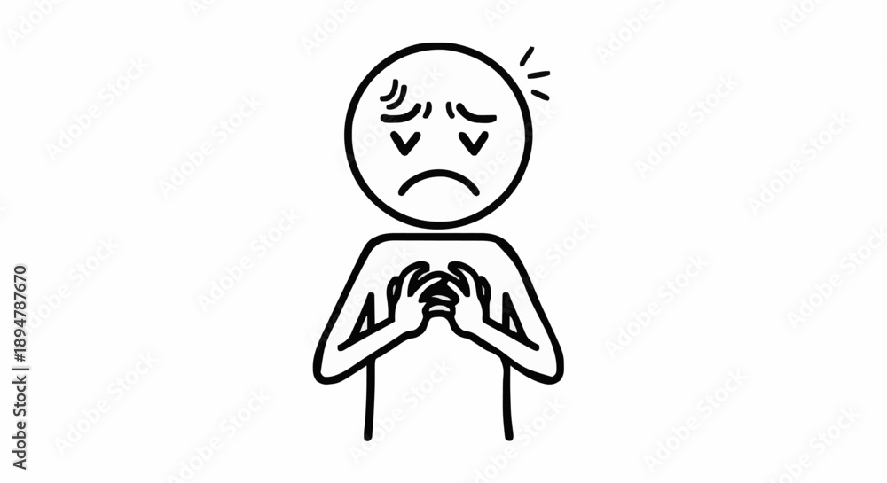 Fotografie Sad Stick Figure Holding Chest in Distress.