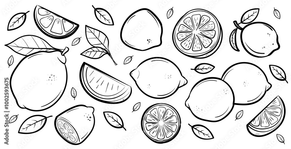 Samolepka Ensemble de citrons sous différents angles - Illustrations dessinées à la main d
