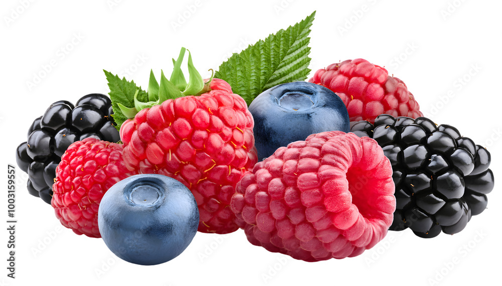 Samolepka wild Berries mix, raspberry, blueberry, blackberry, isolated on white backgroun