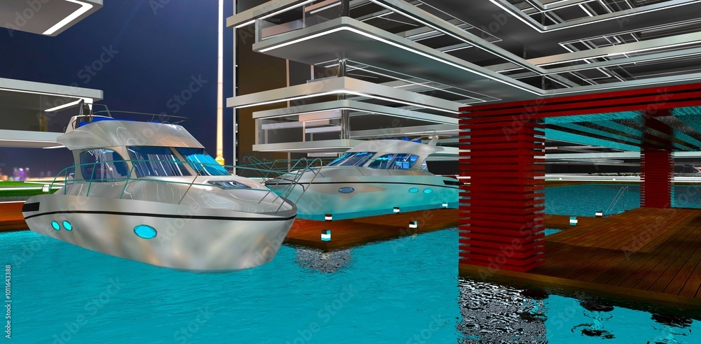 Samolepka Design of a docking area for guest vessels at an elite modern hotel