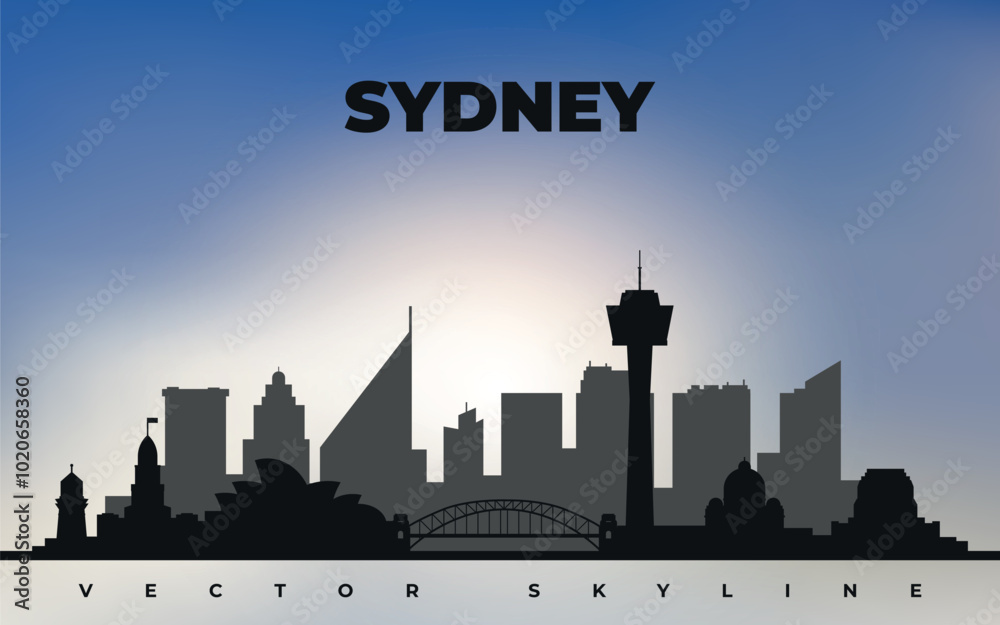 Samolepka Black silhouette of Sydney city skyline on the background of blue sky