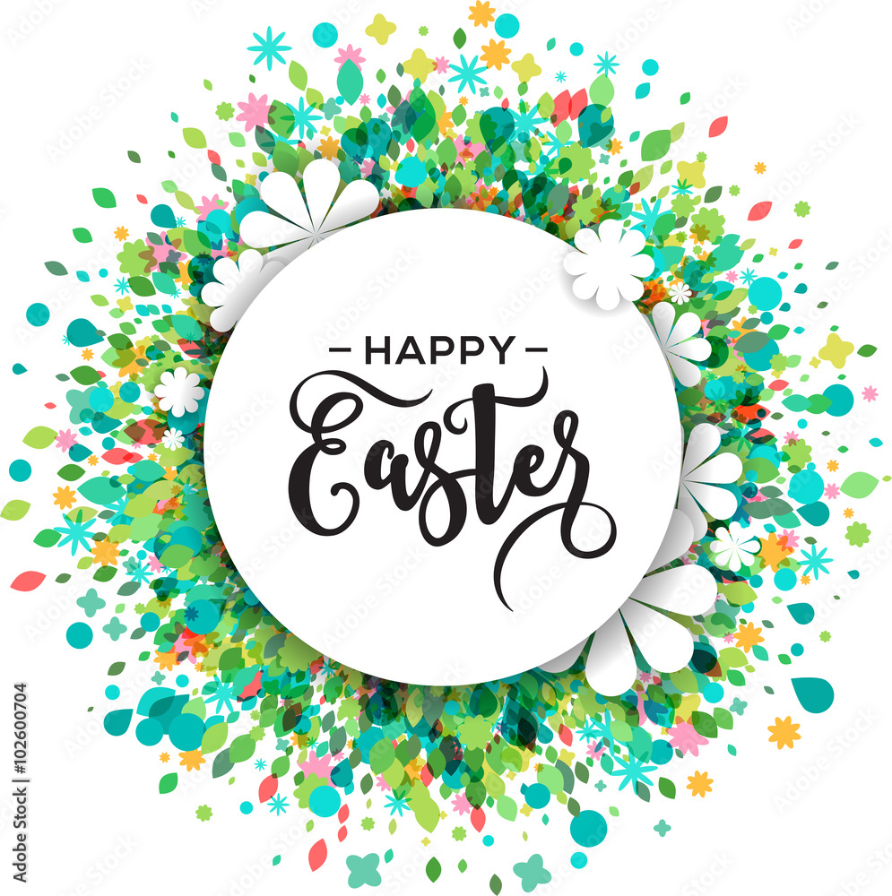 Samolepka Colorful Happy Easter and spring greeting card, poster with flowers