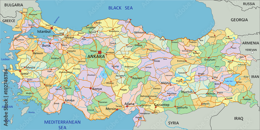 Samolepka Turkey - Highly detailed editable political map with labeling.