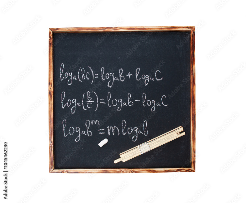 Samolepka Logarithmic formulas written on a blackboard and logarithm ruler