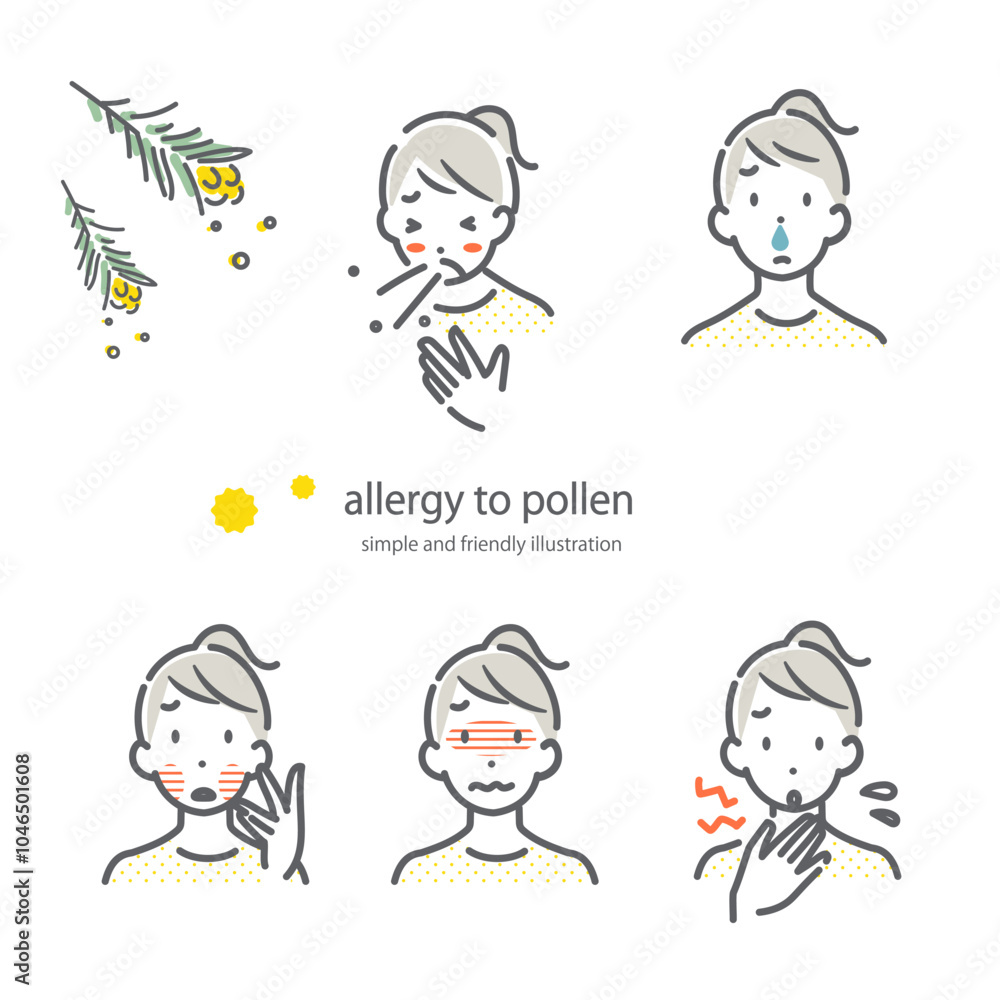 Samolepka 花粉症の症状がつらい若い女性 シンプルでお洒落な線画イラスト