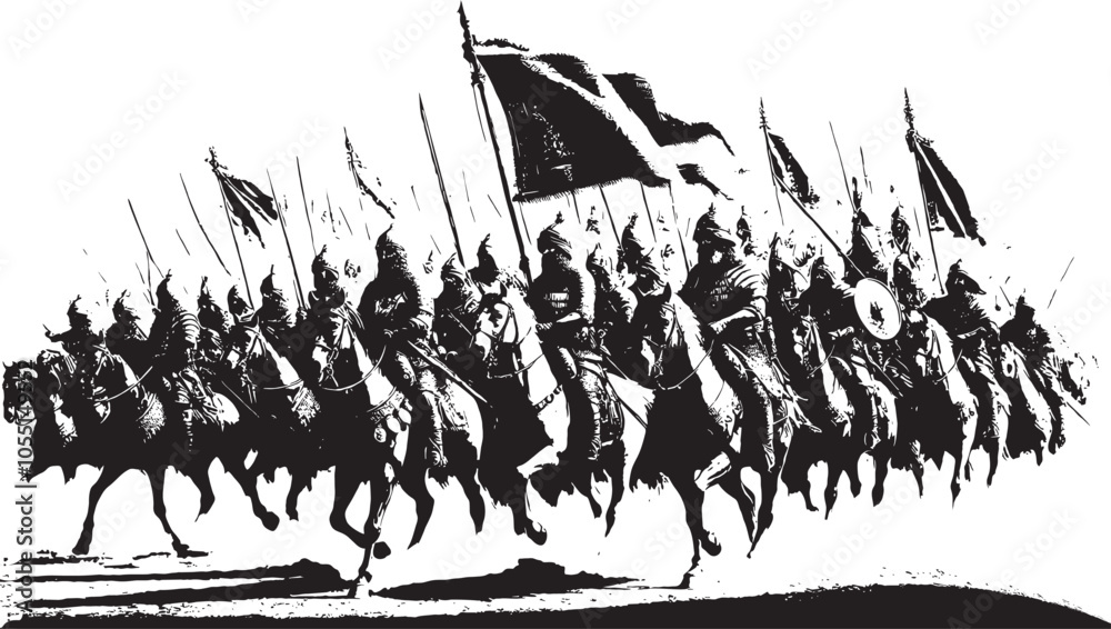Samolepka Medieval Warfare Cavalry Old War Scene Army Attacking on horses with swords and