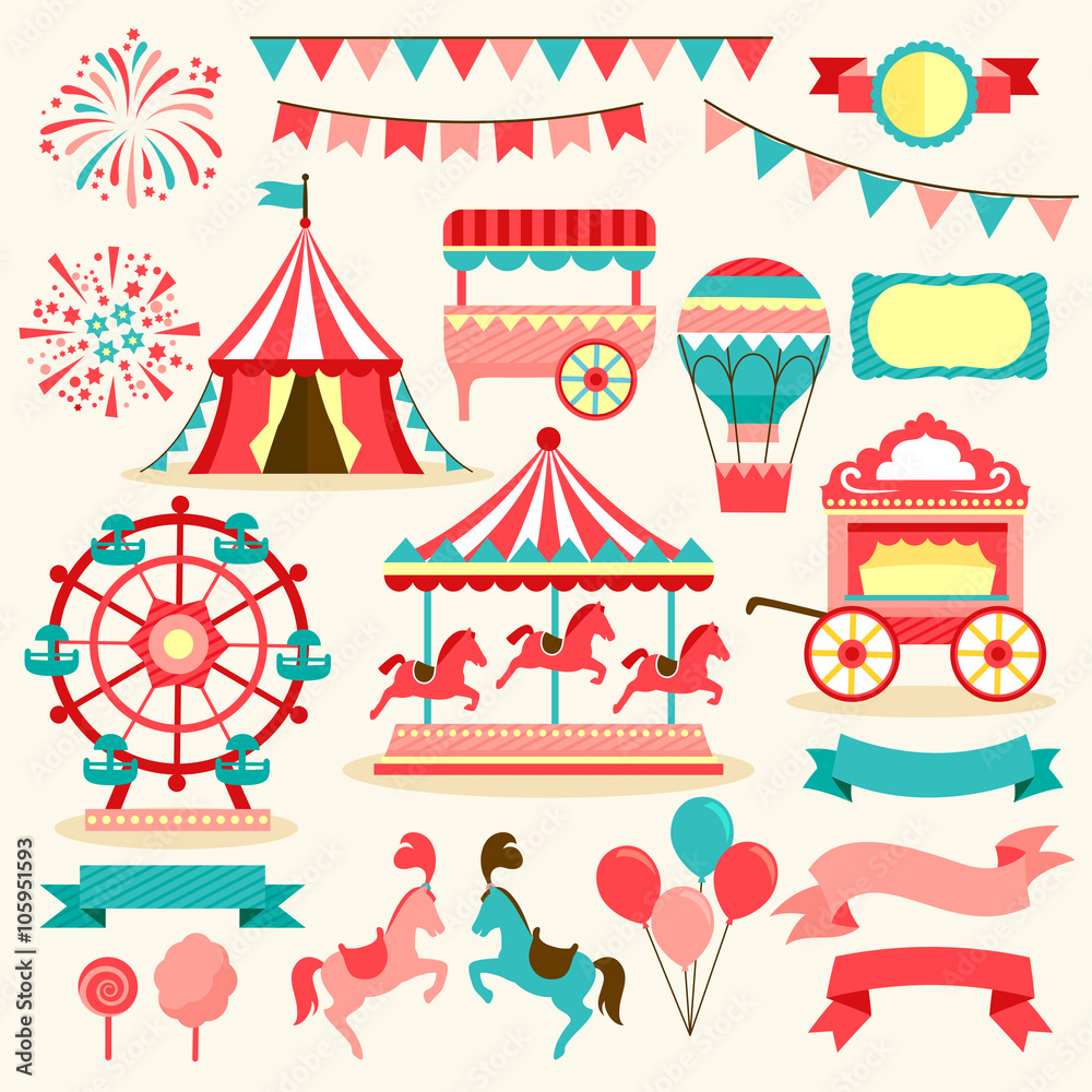 Samolepka collection of elements related to carnival and circus