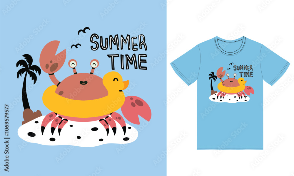 Samolepka Cute crab summer time illustration with tshirt vector