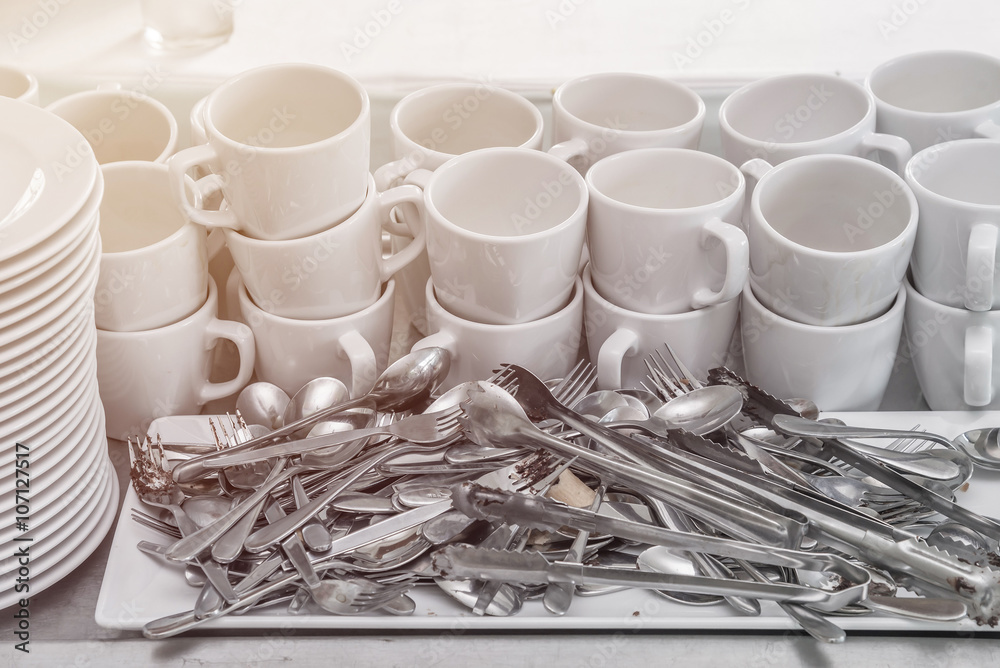Samolepka Dirty of dish and kitchenware waiting for wash