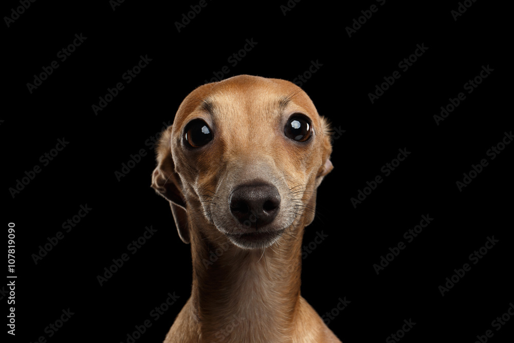 Samolepka Closeup Portrait Italian Greyhound Dog Looking in Camera isolated Black