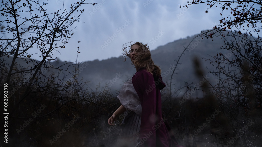 Samolepka Portrait of young mystical running fairy girl queen princess in motion, deep for