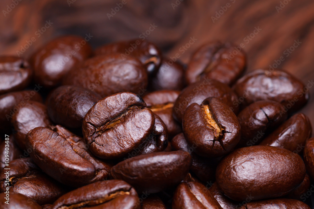 Samolepka Roasted detailed tasty coffee beans with natural blurry background