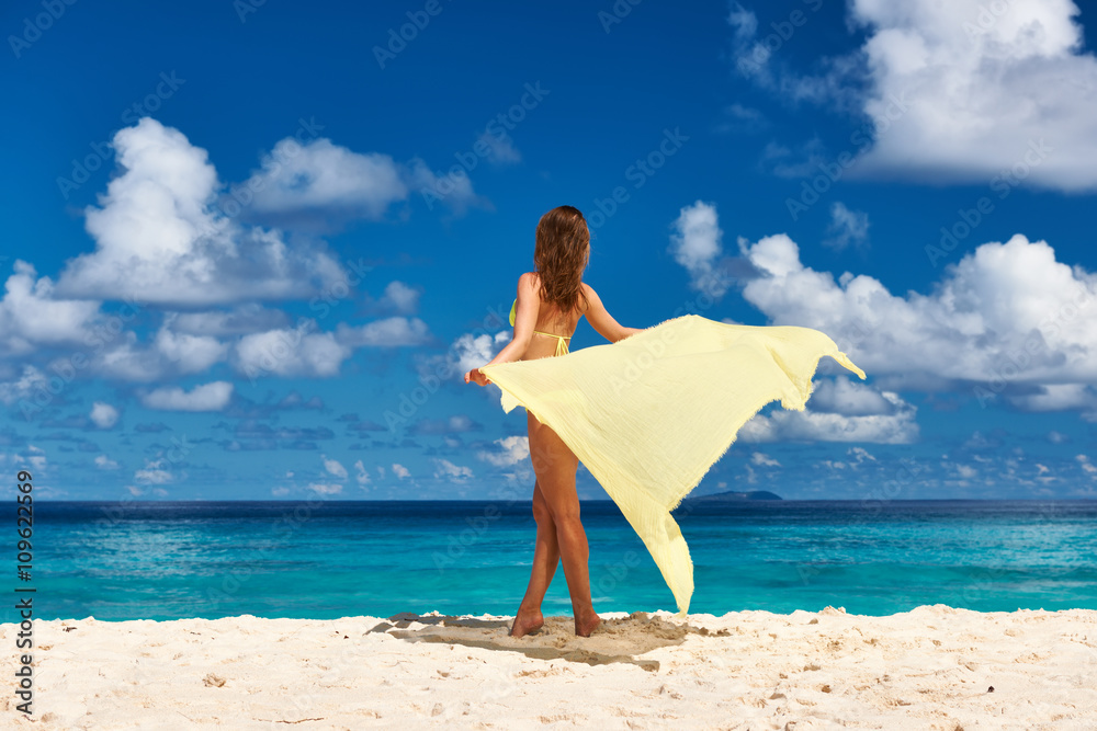 Samolepka Woman with sarong at beach