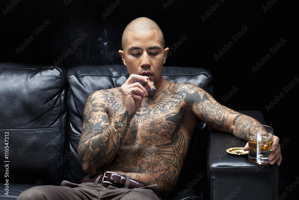 Samolepka african american gangsta smoking and drinking.