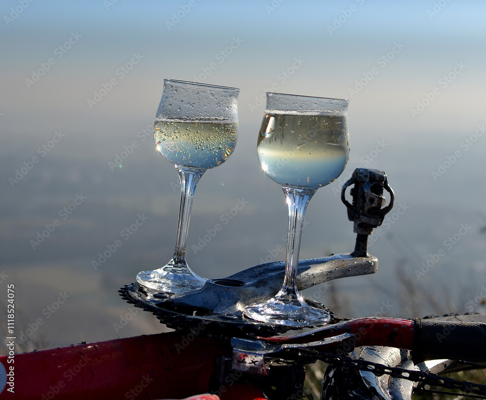 Samolepka Kieliszki z szampanem na korbie rowerowej