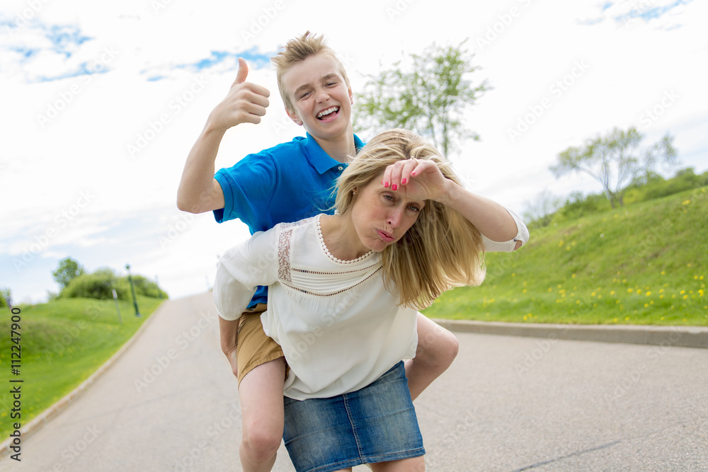Samolepka happy family mother and herson spending time outdoor on a summer day