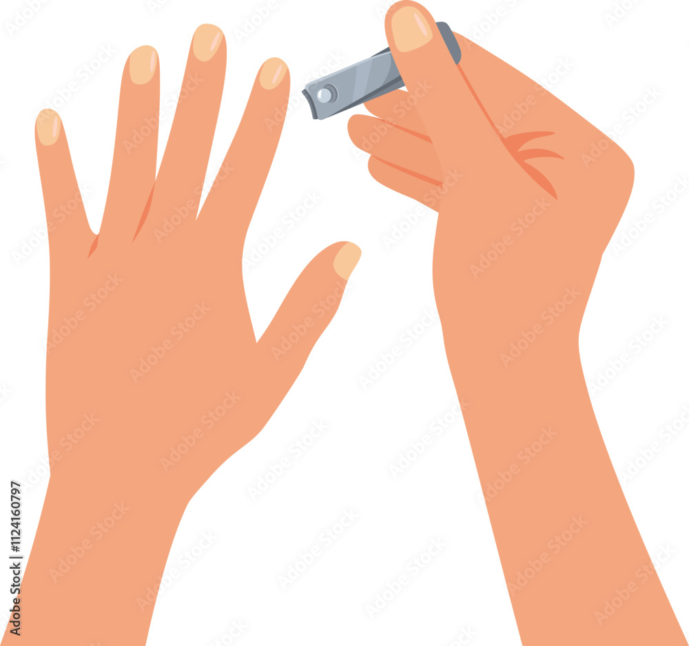 Samolepka Person Using Nail Clipper for Grooming Manicure Vector Illustration