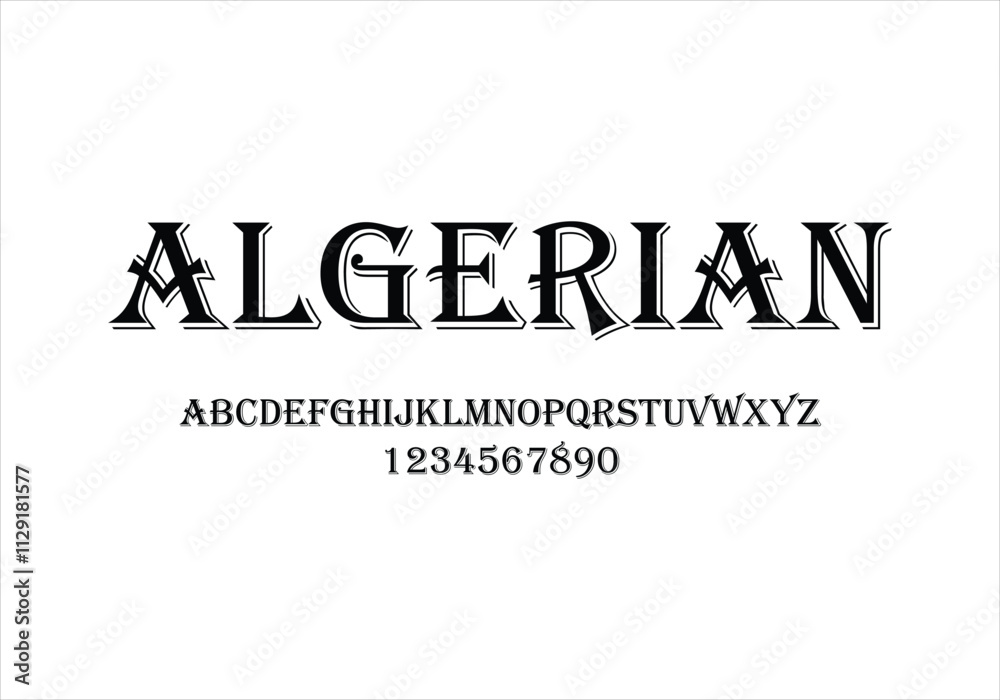 Samolepka Algerian font for logo and headline. Isolated vector typeset