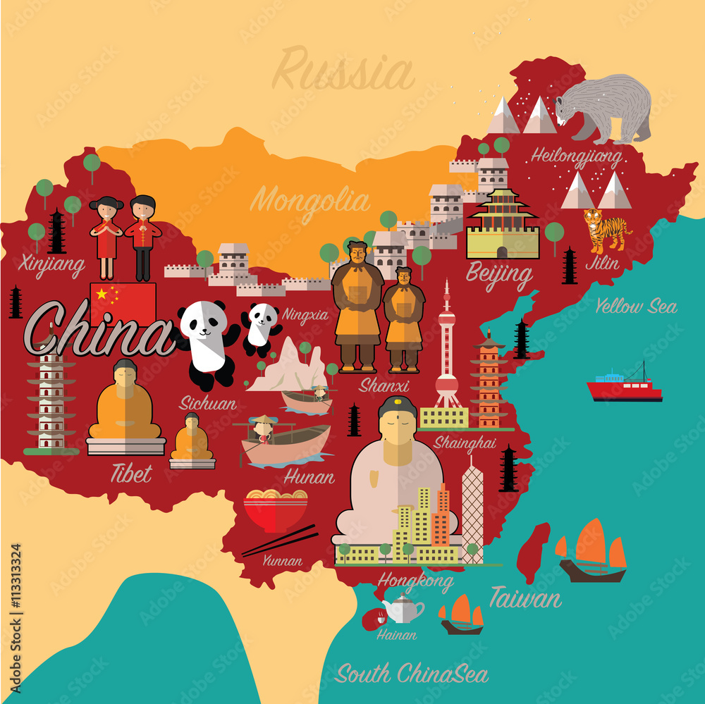 Samolepka China map and travel.China landmark eps 10 format