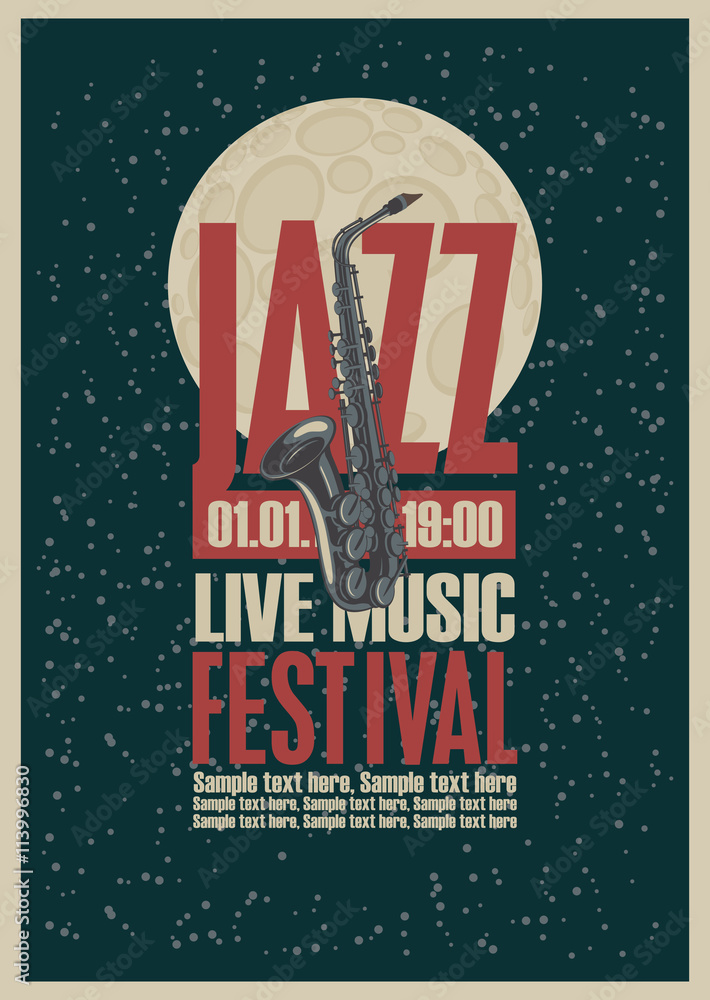 Samolepka Poster with a saxophone for jazz festivals with live music on background of the