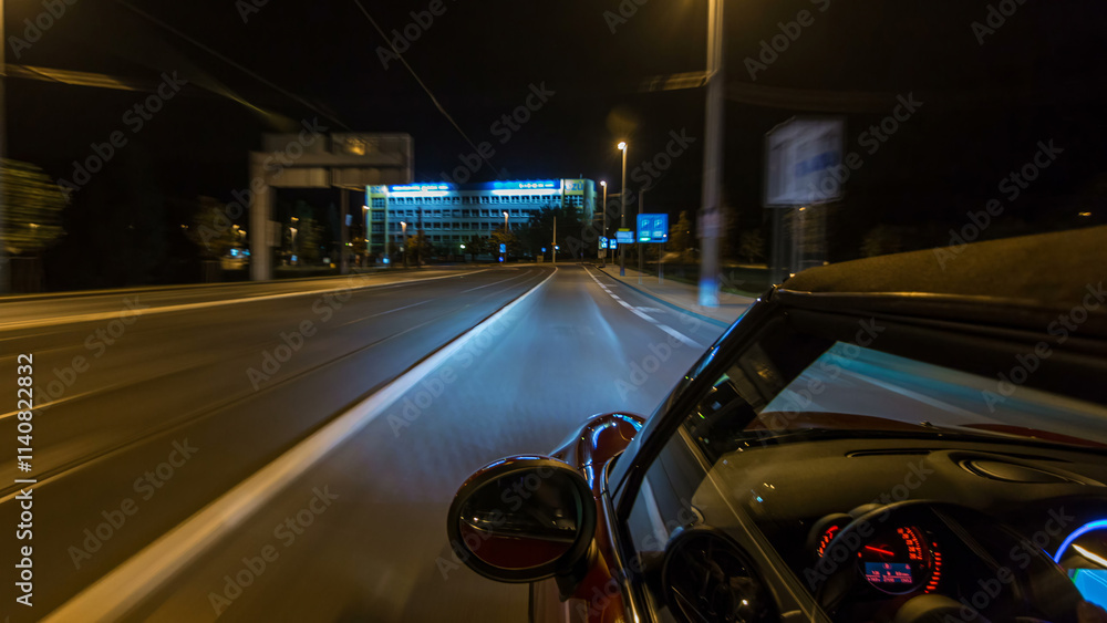 Samolepka Car moves at fast speed at the night streets timelapse hyperlapse drivelapse