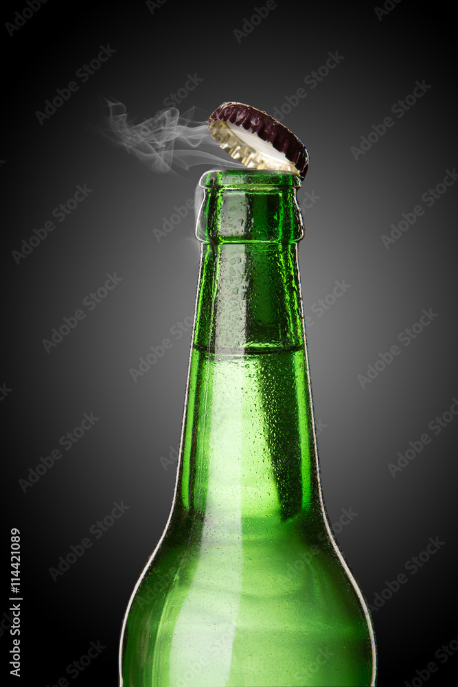 Samolepka Studená mokré láhev piva s mrazem a páry